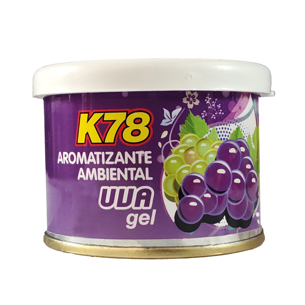 Aromatizante en Gel K78 para autos y ambientes. Su fórmula asegura una fragancia suave y fresca en el ambiente a aromatizar durante 30-45 días.