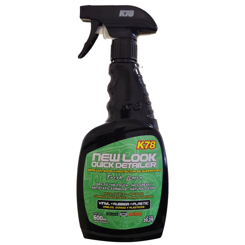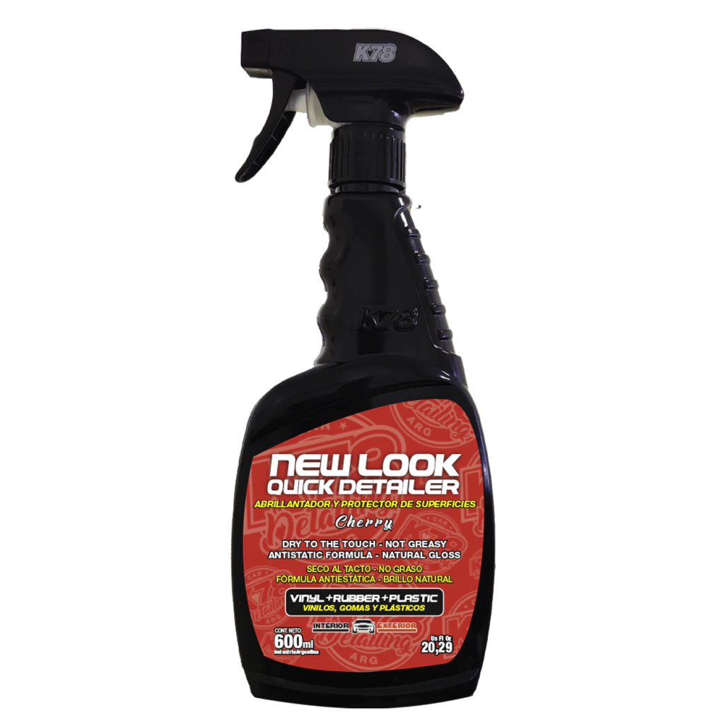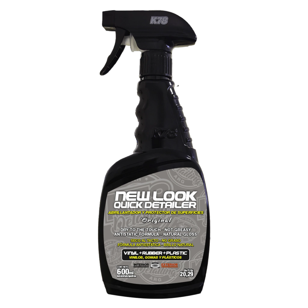 New Look Quick Detailer protege todas las superficies interiores y exteriores de vinilos, goma, cuero y plásticos. Desarrollado con bloqueadores solares, permite recuperar el aspecto original de la superficie por más tiempo. Es un producto de fácil aplicación, no graso y de rápido secado.